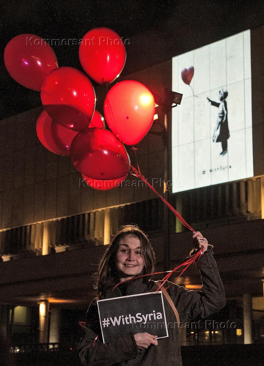 Культура Представление 15-метровая проекция версии работы Бэнкси «Девочка с шаром», в рамках благотворительного проекта #WithSyria, на стене Государственной Третьяковской галереи на Крымском валу.