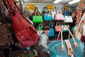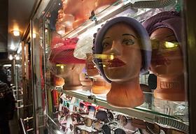 Торговля головными уборами и солнцезащитными очками в подземном переходе.