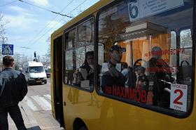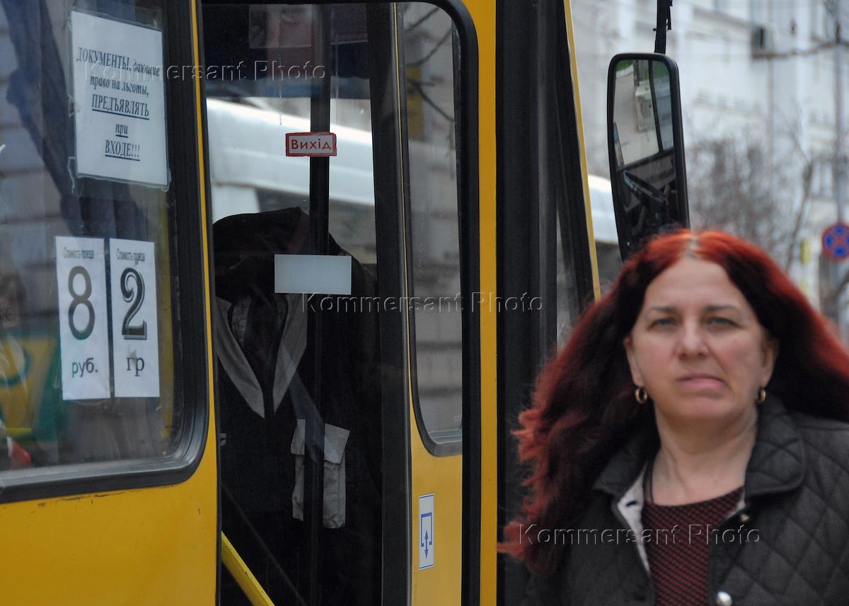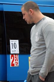 Жанровая фотография. Стоимость проезда на автобусе в рублях и гривнах.