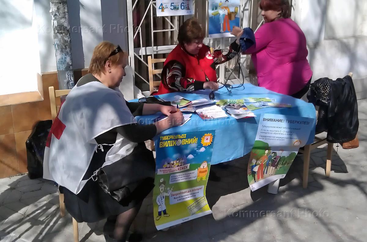 Жители Симферополя проходят бесплатное медицинское обследование на улице города.