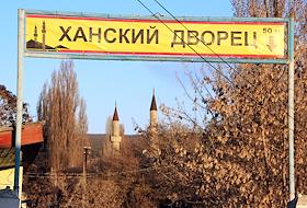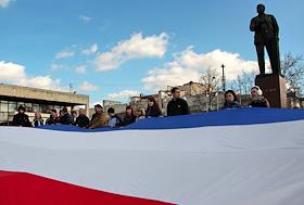 На площади Ленина молодые люди держат гигантский флаг Крыма.