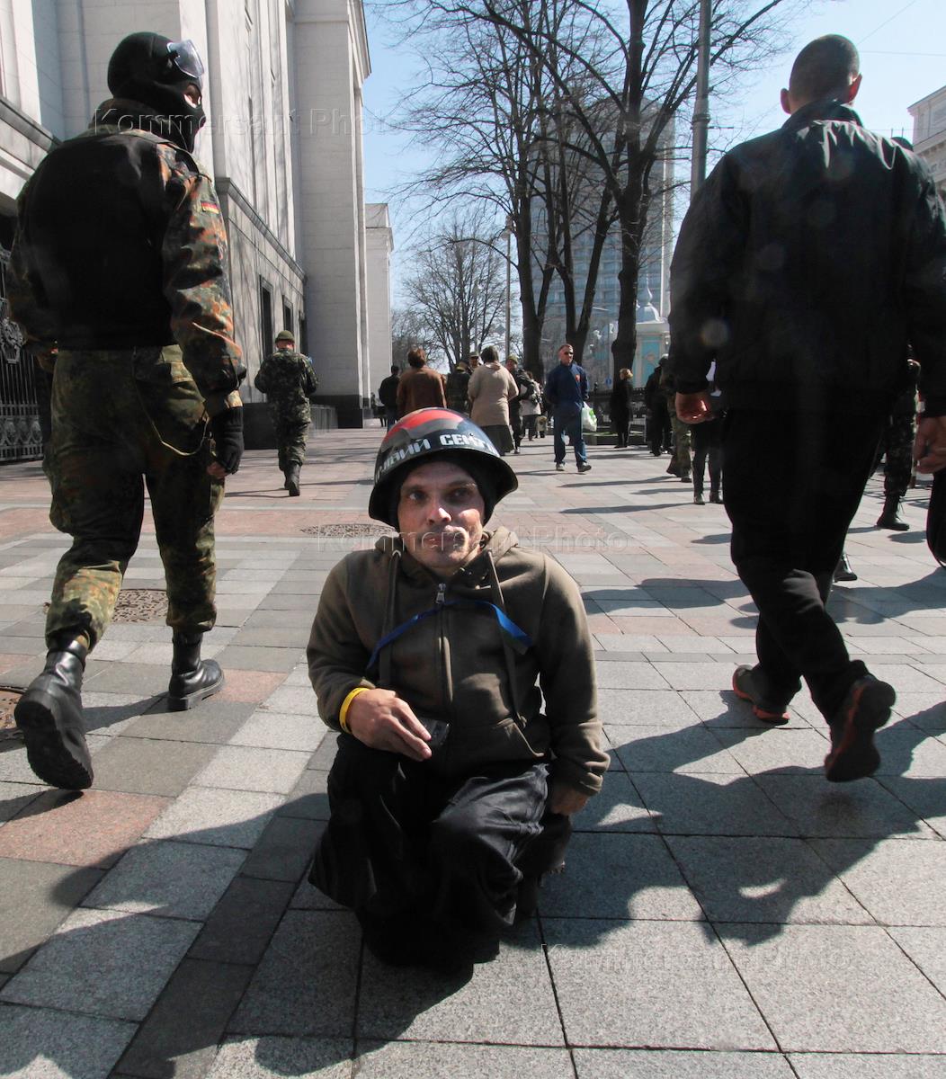 Инвалид на тележке, сторонник правого сектора и радикальных действий, вышел поддержать правый сектор…