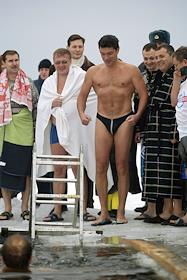Лидер партии "Союз правых сил" Борис Немцов (слева) во время Крещенского купания в Серебряном бору.