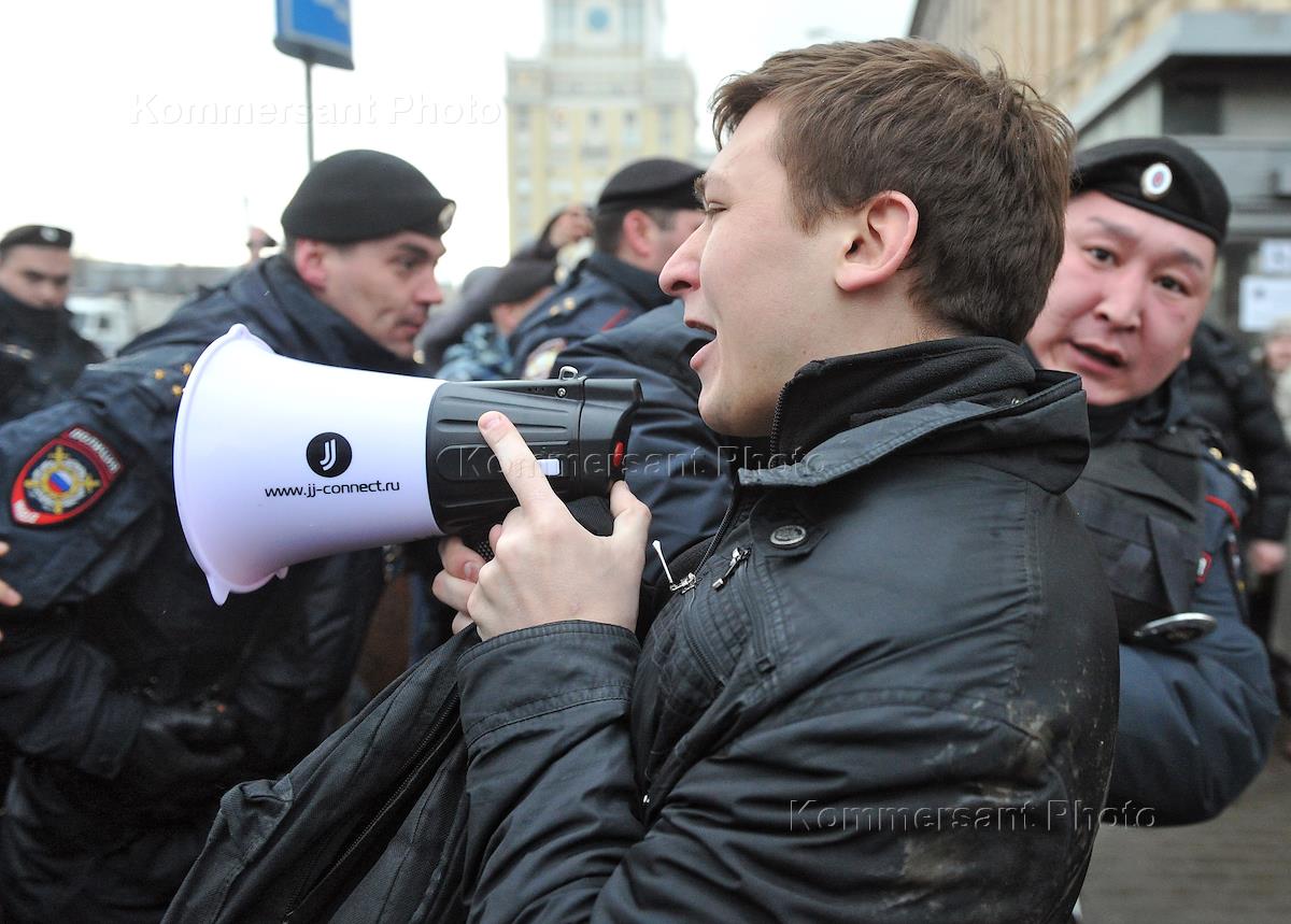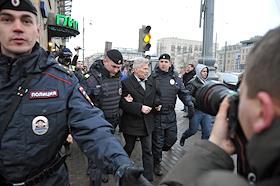 Сотрудники правоохранительных органов во время задержания участников несогласованной с властями…