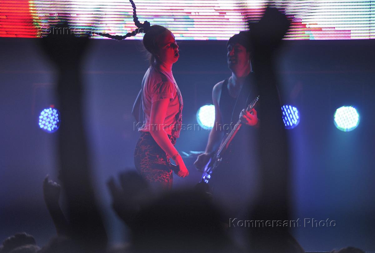 Датская исполнительница МО (Карен Мари Эрстед) (слева) во время выступления в клубе "Москва Hall".