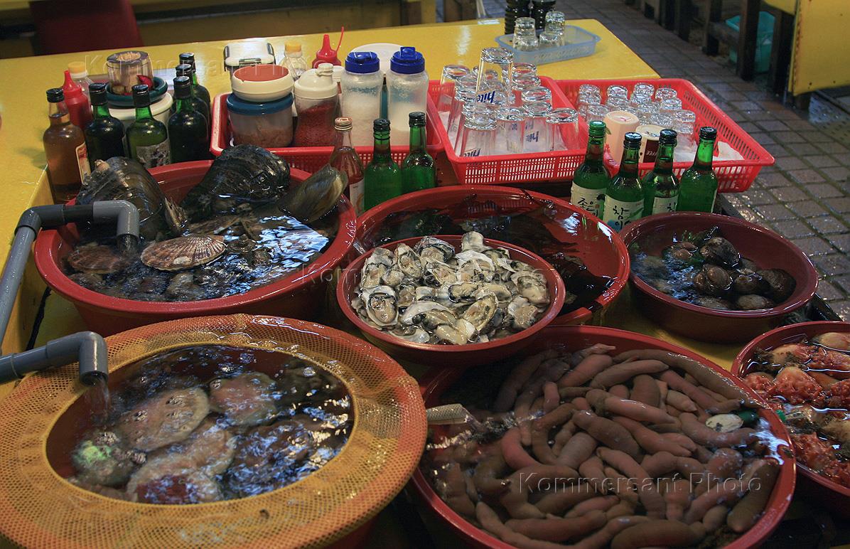 Одно из рабочих мест на рынке, где торгуют рыбой.