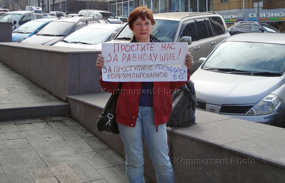 Женщина с плакатом на улице "Простите нас за равнодушие! За преступное корумпированное государство"…