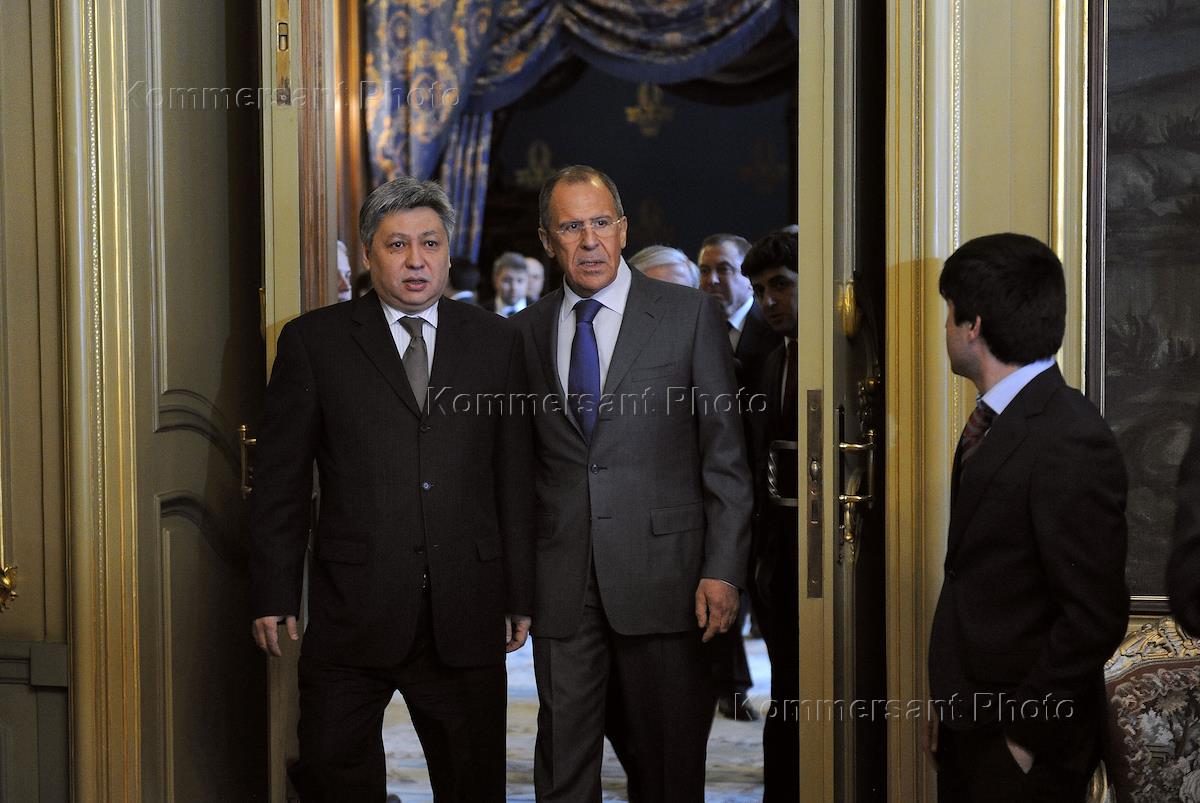 Министр иностранных дел Киргизии Эрлан Абдылдаев (слева) и министр иностранных дел России Сергей…