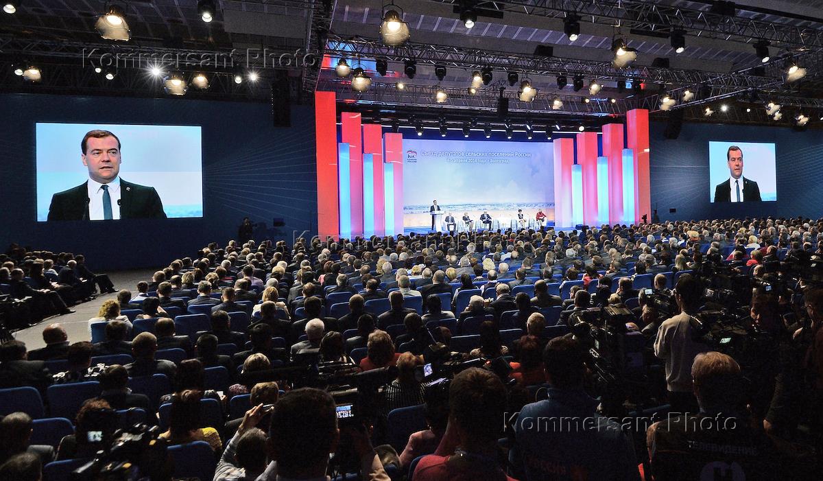 Председатель правительства России Дмитрий Медведев (в центре) на всероссийском съезде представителей…