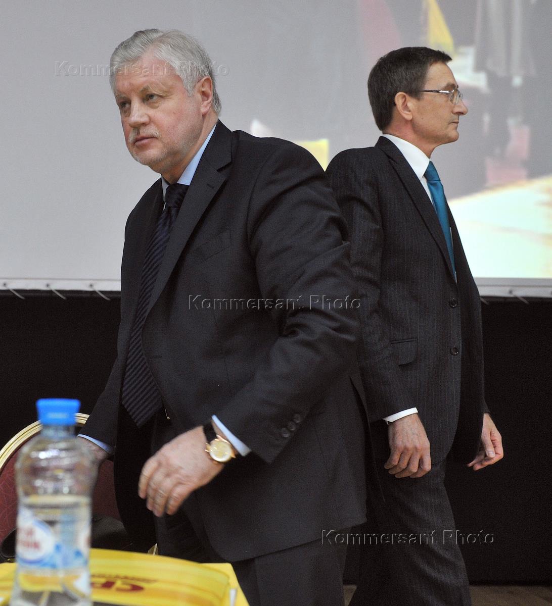 Лидер партии "Справедливая Россия" Сергей Миронов (справа) перед началом расширенного заседания…