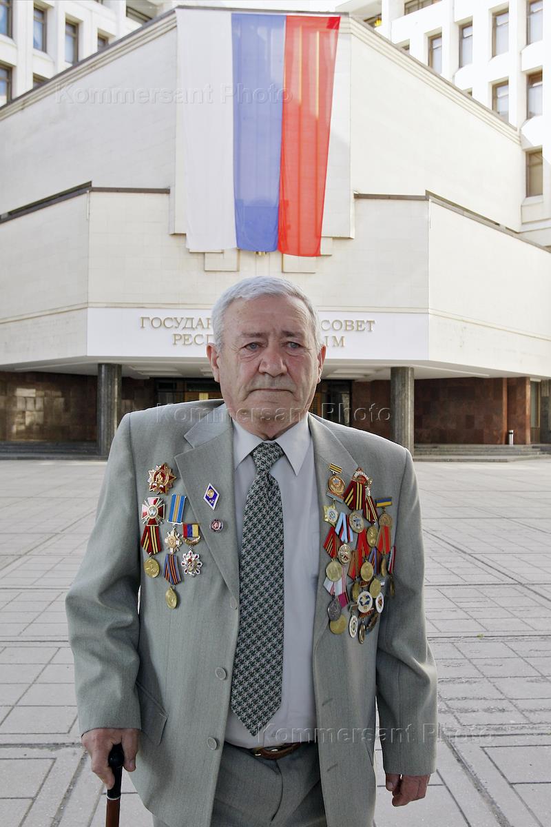 Жанровая фотография. Ветеран Великой Отечественной войны (ВОв) у здания Государственного совета…