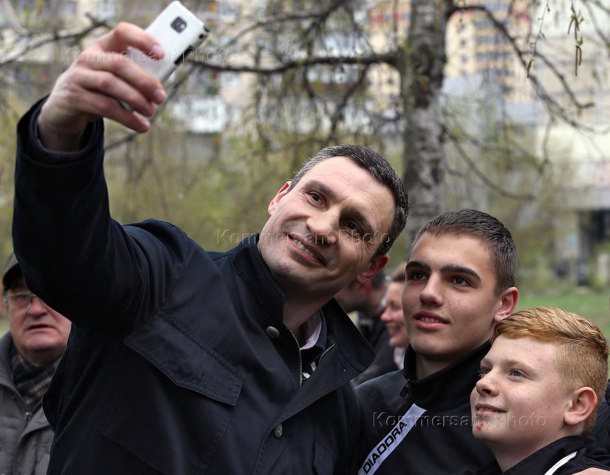 Лидер "УДАРа" Виталий Кличко на субботнике на стадионе "Старт.