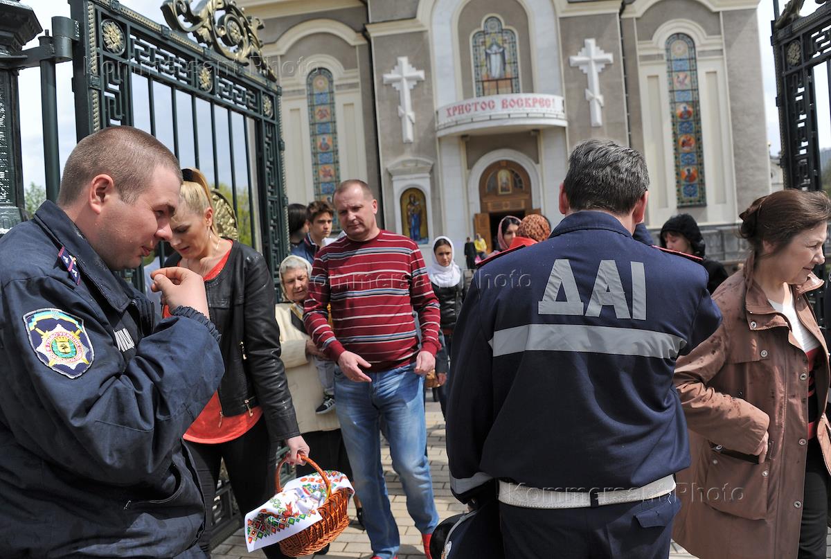 Политическая ситуация на Украине. Воскресение Христово (ПАСХА). Верующие у Спасо-Преображенского…