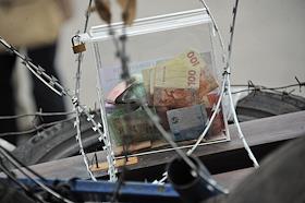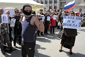 Политическая ситуация в Донецке. Жители во время акции против Национального банка Украины.