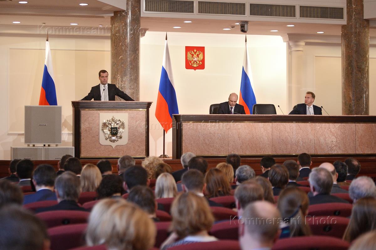 Экономика и бизнес Заседание расширенной коллегии министерства финансов России. Встреча премьер-министра Казахстана Карима Масимова и премьер-министра России Дмитрия Медведева.