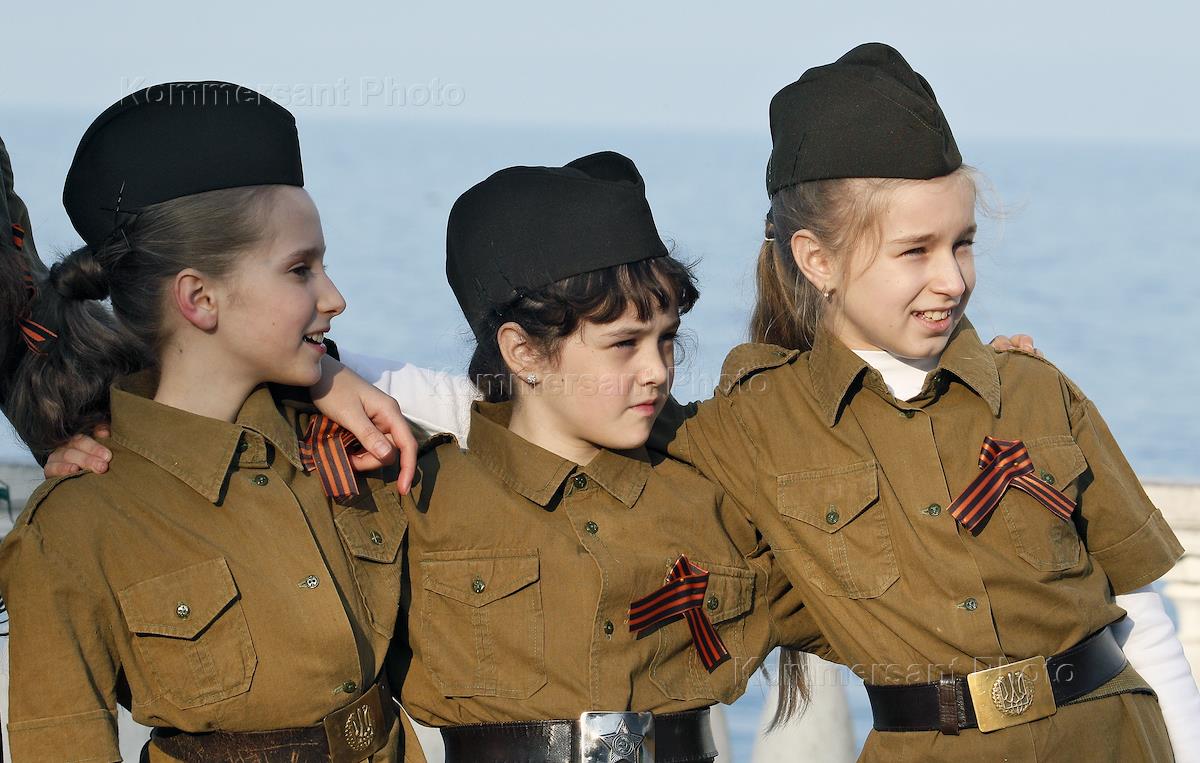 Юные участницы торжественных мероприятий по случаю 70-й годовщины освобождения города от фашистских…