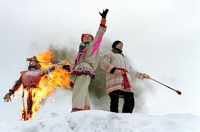 Традиционное сожжение чучела "зимы" во время праздника Масленицы в музее-заповеднике "Коломенское".
