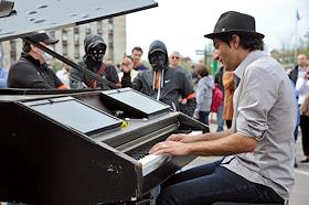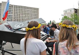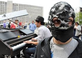 Культура Политическая ситуация на Украине. Донецк. Немецкий музыкант Давиде Мартелло сыграл у баррикад возле областной администрации в Донецке и призвал к миру.