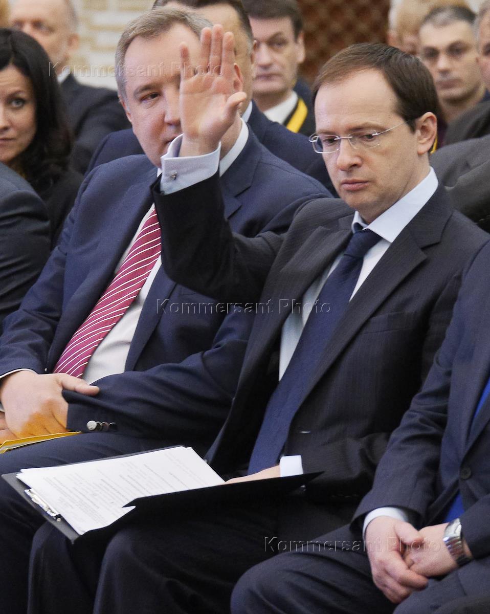 Заместитель председателя правительства России Дмитрий Рогозин (слева) и министр культуры России…
