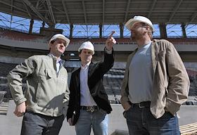 Строительство стадиона "Открытие Арена". Футболист Егор Титов (в центре) и теннисист Евгений…