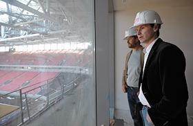 Cтроительные работы на стадионе "Спартака" "Открытие Арена" в Тушино. Евгений Кафельникиов и Егор Титов показывает свою ложу.