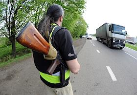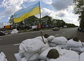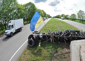 Политическая ситуация на Украине. Блокпост на окраине Днепропетровска.