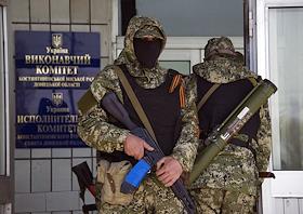 Политическая ситуация на Украине. Ополченцы у захваченного здания городского совета Константиновки…