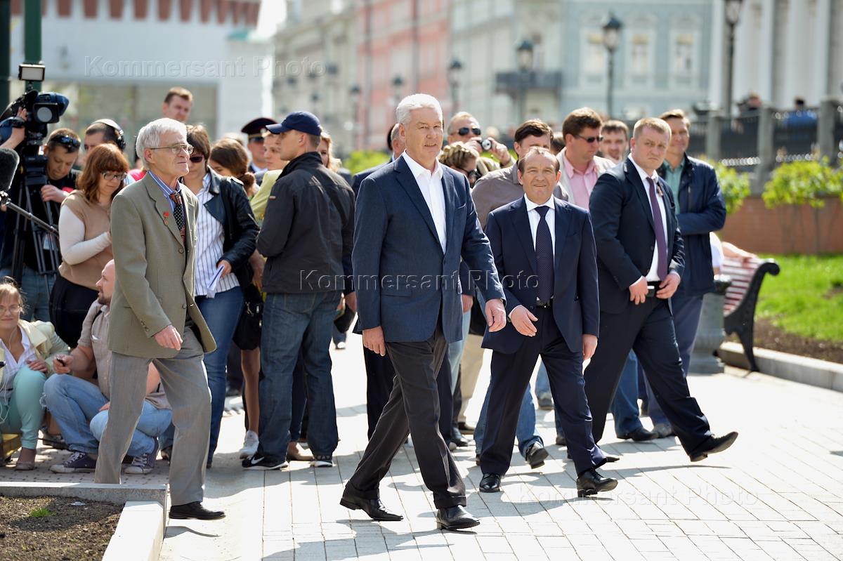 Осмотр мэром Москвы Сергеем Собяниным строительства метро "Бутырская". Открытие сезона фонтанов на Манежной площади.