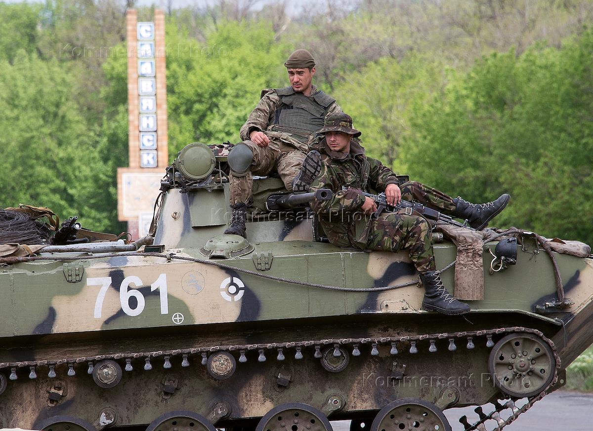Политическая ситуация на Украине. Украинские военные на въезде в Славянск.