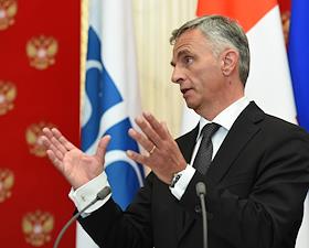 Президент Швейцарии, действующий председатель ОБСЕ Дидье Буркхальтер во время совместной c…