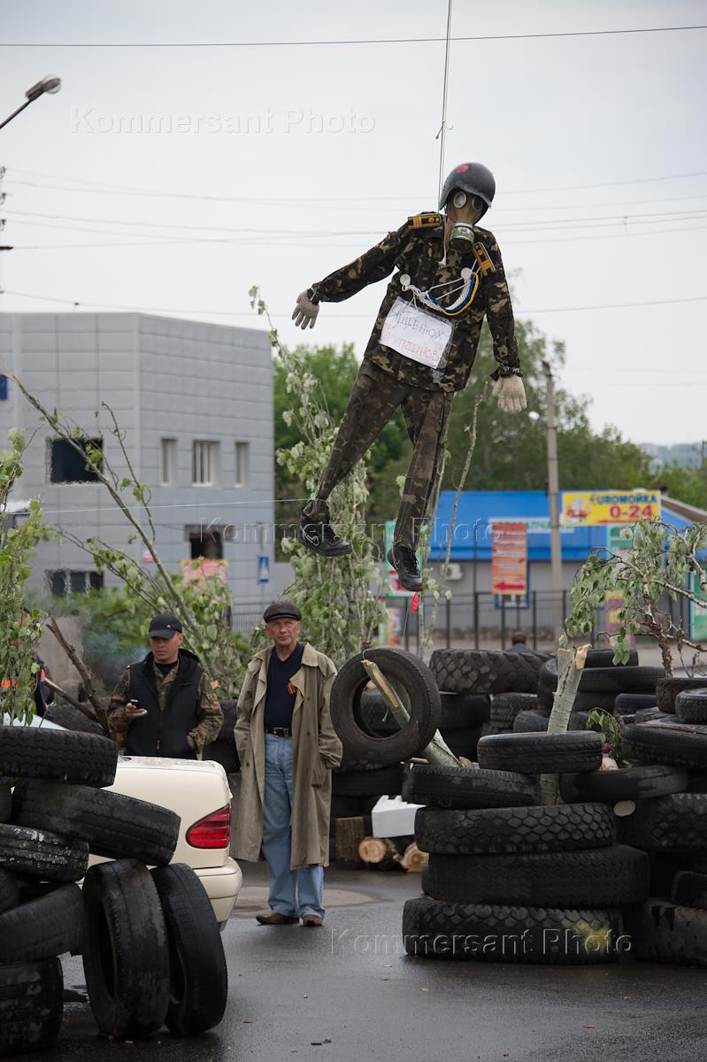 Политика Политическая ситуация на Украине. У входа в городскую администрацию города Славянска. Блокпост украинской армии перед въездом в Славянск. Народные ополченцы на блокпосту на въезде в Славянск. Празднования Дня Победы.