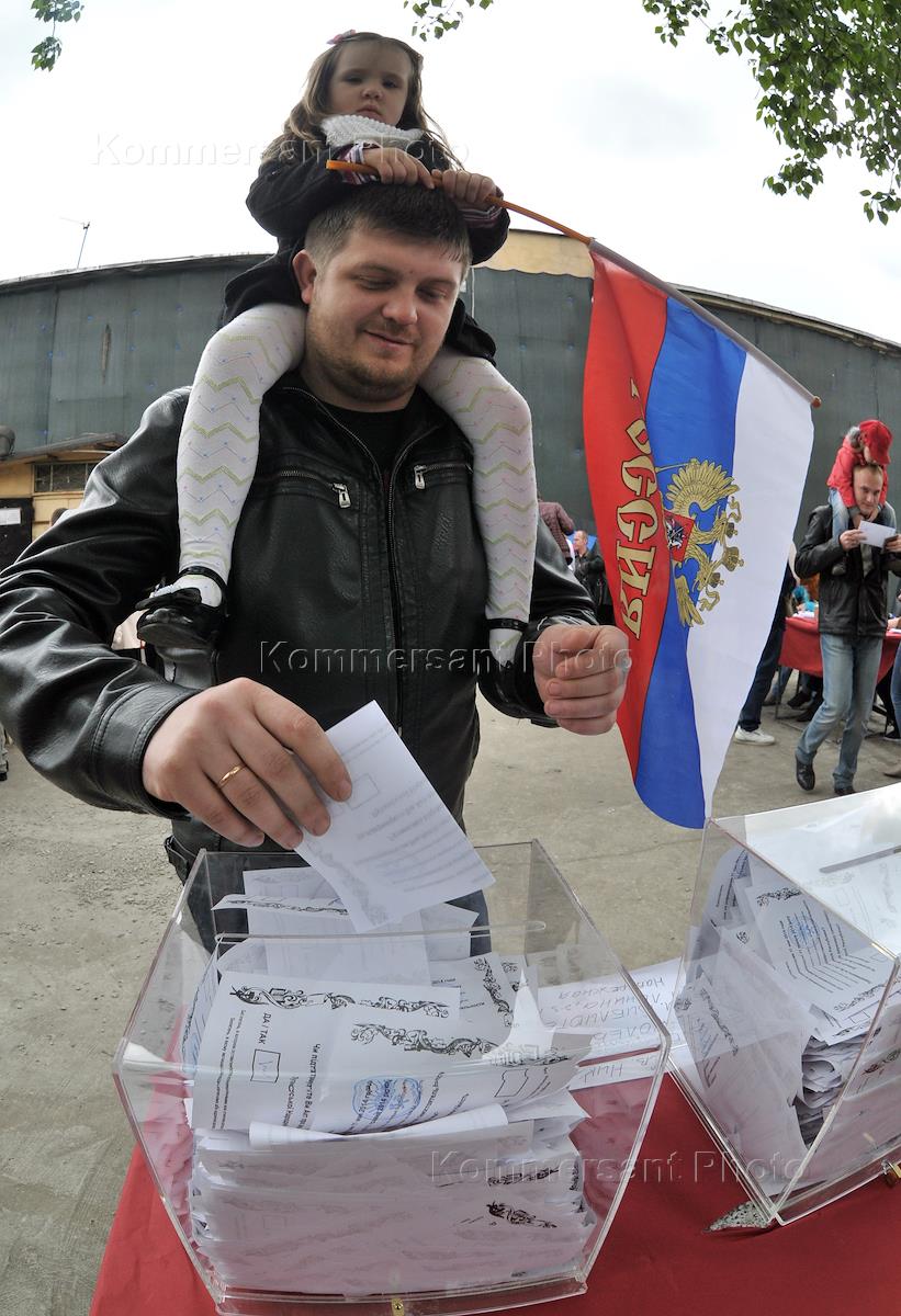 Политика Референдум за самоопределение Донецкой и Луганской областей Украины. Граждане Украины, находящиеся в Москве, во время участия в референдуме. Избирательный участок на улице Киевская.