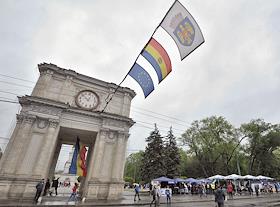 Виды Кишинева. Центральная площадь. Арка Победы. Ярмарка, посвященная вхождению Молдавии в Евросоюз.