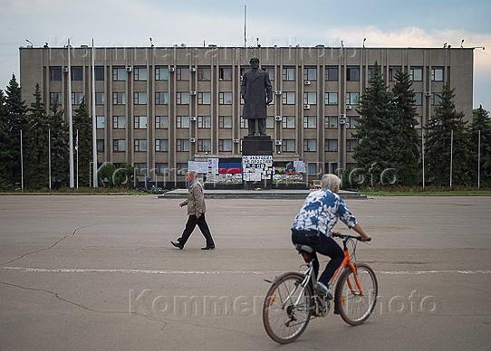 Политическая ситуация на Украине. Виды Славянска. Памятник Ленину на центральной площади города.