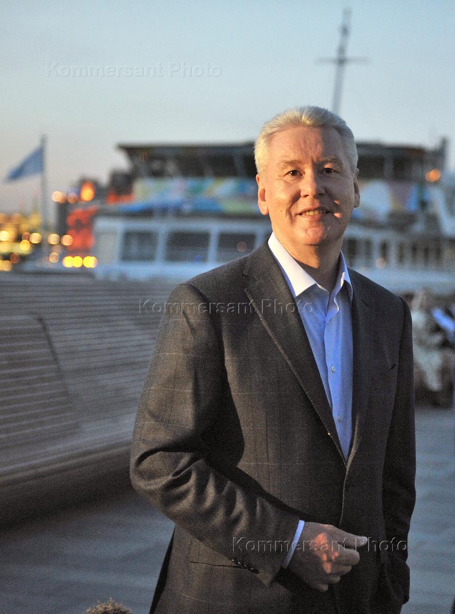 Мэр Москвы Сергей Собянин во время осмотра освещения на Крымской набережной.
