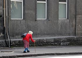 Виды Донецка. Жанровая фотография. Пожилая женщина на улице.