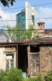 Виды Донецка. Старый дом на фоне небоскреба Green plaza.