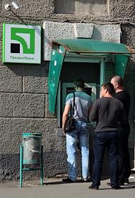Виды Донецка. Мужчина у банкомата "Приват-банка".