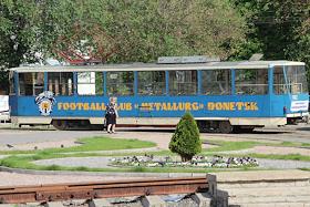 Виды Донецка. Трамвай с рекламой футбольного клуба "Металлист".
