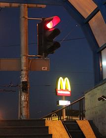 Виды Донецка. Выход из подземного перехода. Реклама ресторана быстрого питания "МакДоналдс".