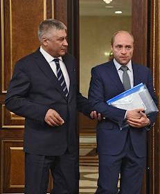 Министр регионального развития России Игорь Слюняев (слева) во время заседания Правительства России…