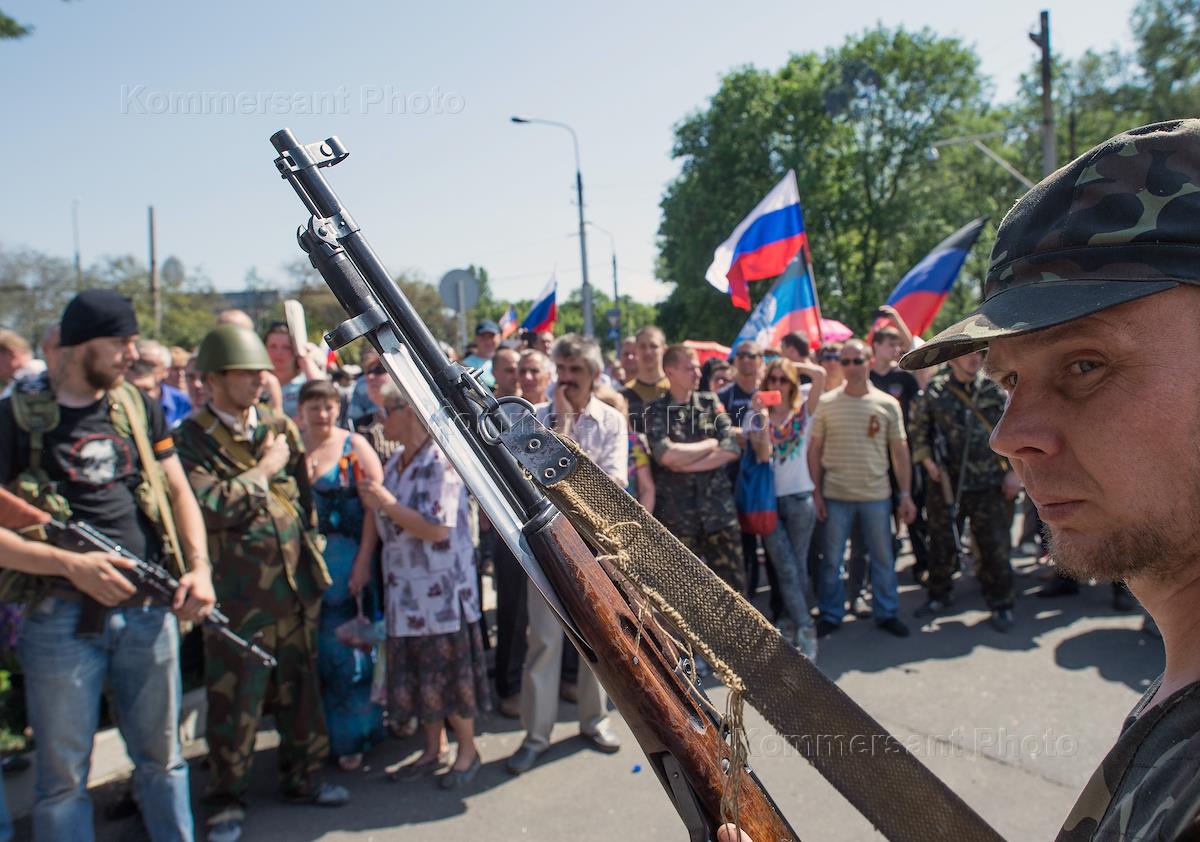 Политическая ситуация на Украине. Сторонники Донецкой Народной Республики у резиденции Рената…