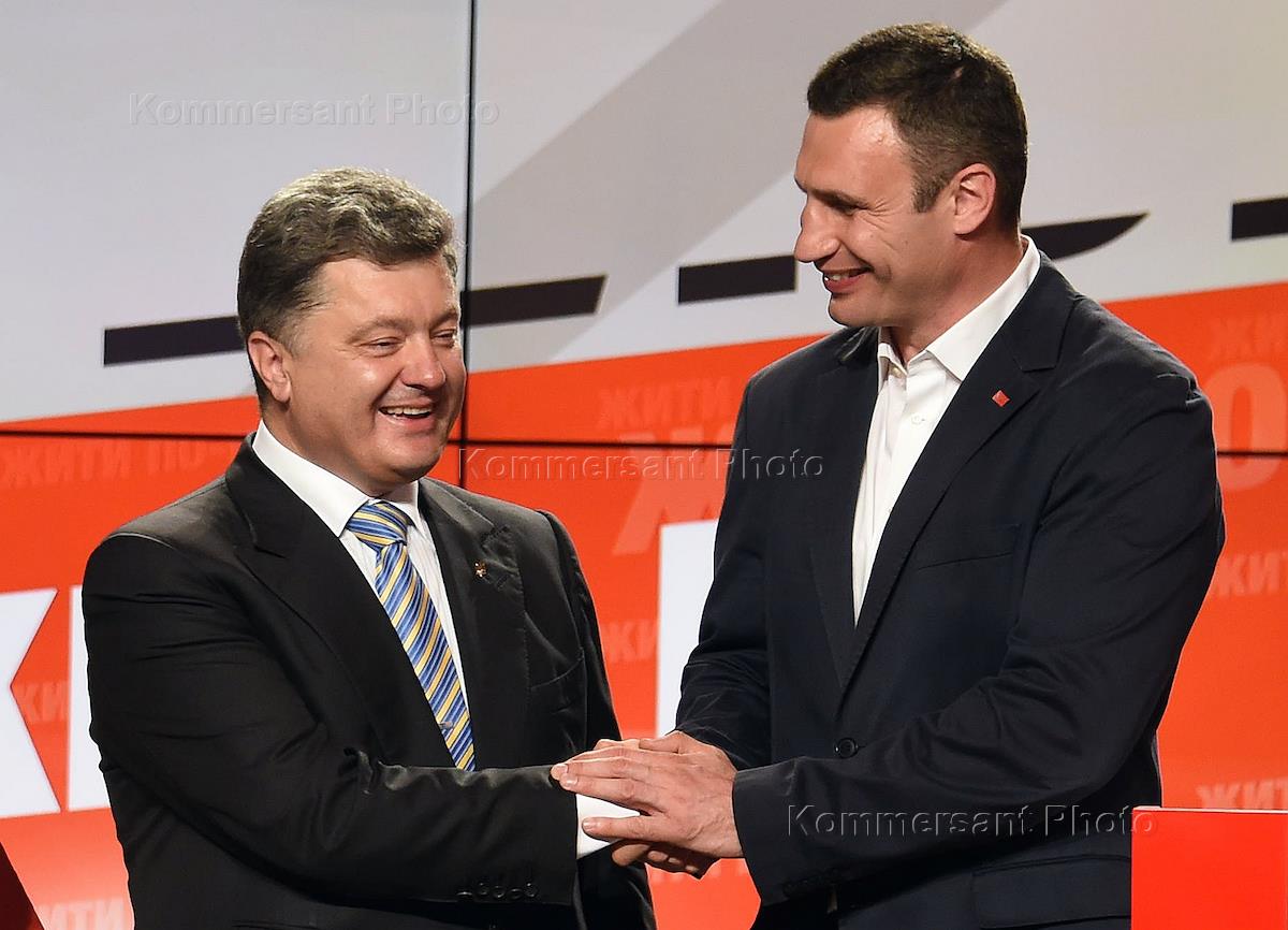 Внеочередные выборы президента Украины. Кандидат в президенты Украины Петр Порошенко (слева) и…