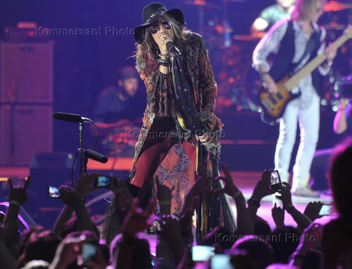 Выступление американской рок-группы "Aerosmith" на концерте в спорткомплексе "Олимпийский".
