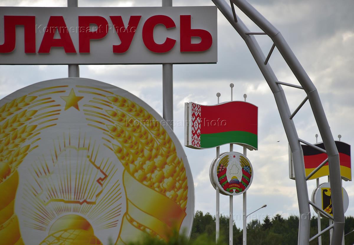 Рабочая поездка председателя правительства России Дмитрия Медведева в Минск. Гербы и флаги…