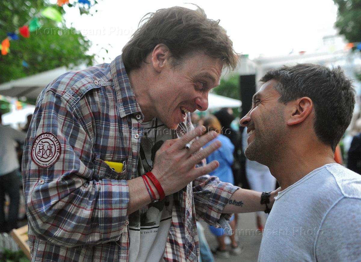 Актер Максим Виторган (слева) на праздновании Дня рождения ресторана "32.05".