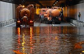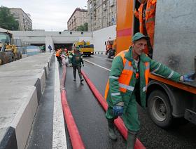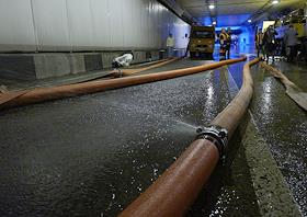 Последствий затопления Алабяно-Балтийский автомобильного тоннеля после сильного ливня.