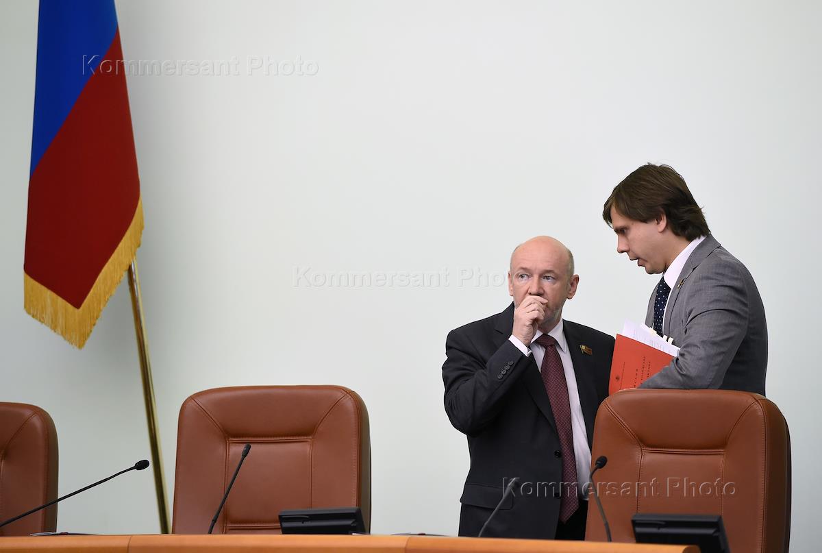 Председатель Московской городской думы Владимир Платонов (слева) и руководитель фракции КПРФ в…