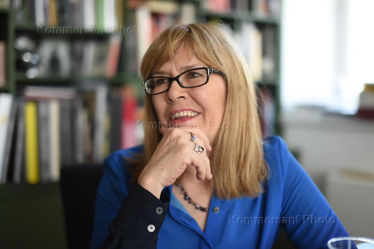 Директор архива кинокомпании "EON Productions Limited" Мег Симмондс во время интервью в Мультимедиа…