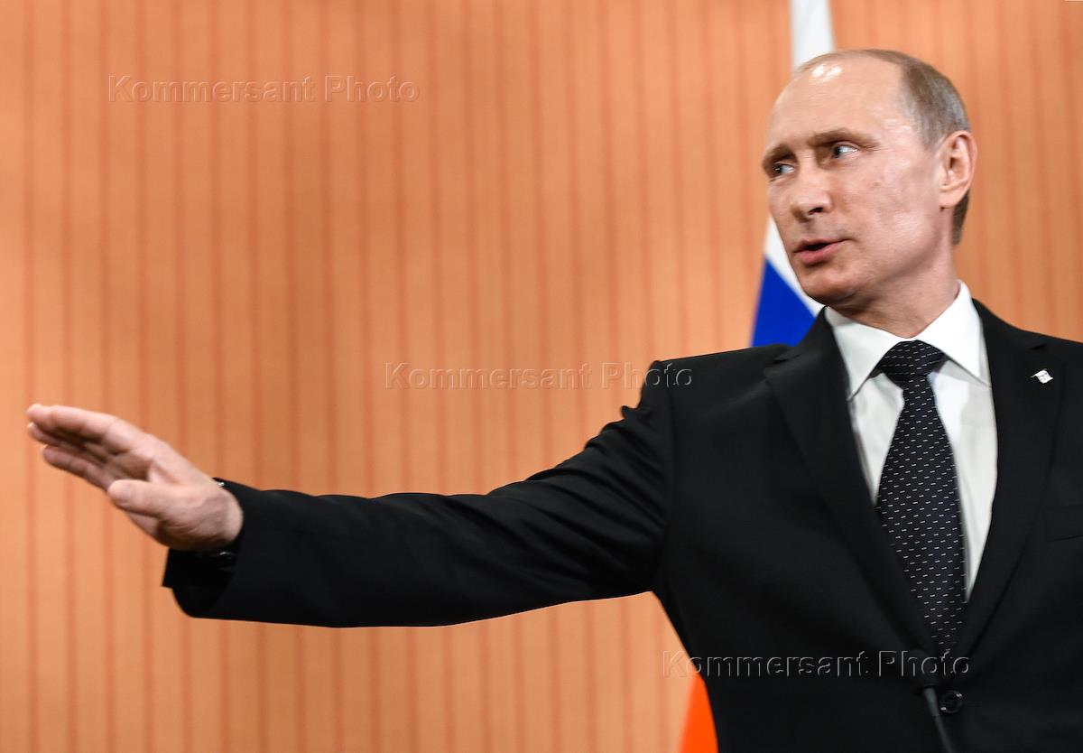 Канцлер Германии Ангела Меркель (слева) и президент России Владимир Путин (справа) во время…